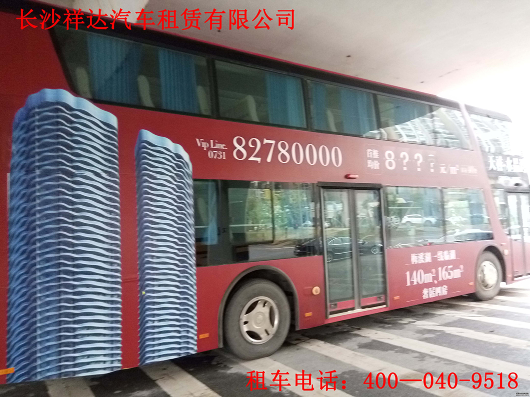 長沙祥達(dá)汽車租賃公司為“天祥.水晶灣”提供雙層巴士看房車