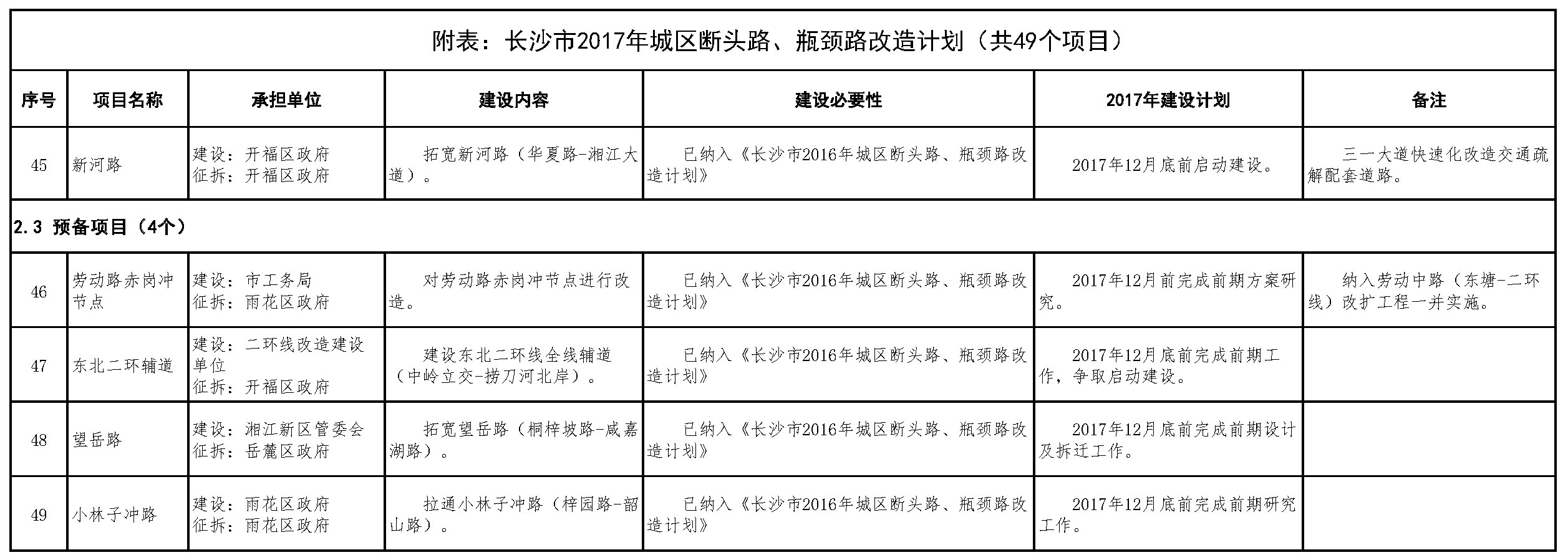 “根據(jù)前期住建委多次進(jìn)行的專家論證和征求意見(jiàn),并與市規(guī)劃、交警、城管等單位多次對(duì)接,今年初步鋪排斷頭路、瓶頸路改造項(xiàng)目49個(gè),包括續(xù)建項(xiàng)目16個(gè)、新建項(xiàng)目22個(gè)、預(yù)備項(xiàng)目11個(gè)。”蔣明鋒介紹,今年的斷頭路、瓶頸路改造項(xiàng)目建設(shè)重點(diǎn)圍繞五個(gè)方面,分別是重點(diǎn)片區(qū)路網(wǎng)優(yōu)化,片區(qū)交通微循環(huán)改造,快速(捷)路改造配套,過(guò)京港澳高速、京廣鐵路通道增容,福元路大橋河西段兩廂接線路網(wǎng)優(yōu)化。
