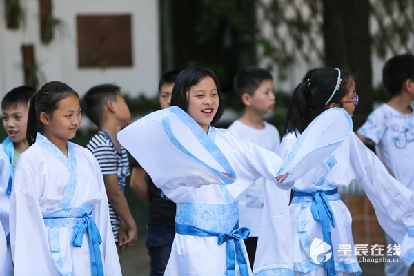 在潮宗街小學(xué)里,孩子們也準(zhǔn)備用特別的方式迎接即將到來(lái)的端午節(jié)、兒童節(jié)。“我們要表演詩(shī)朗誦,有音樂(lè)還有舞蹈。”看到照相機(jī)的鏡頭,小學(xué)生們毫不隱藏自己對(duì)演出的期待。盡管午后的太陽(yáng)并不秀氣,但身著演出服的他們依然是滿臉認(rèn)真。星辰全媒體記者 文帥偉 攝