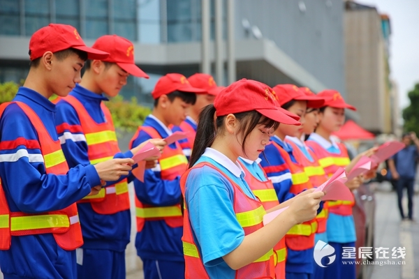 (志愿者一起宣讀文明倡導(dǎo)書(shū)。圖片均由星辰全媒體記者 文帥偉 攝)