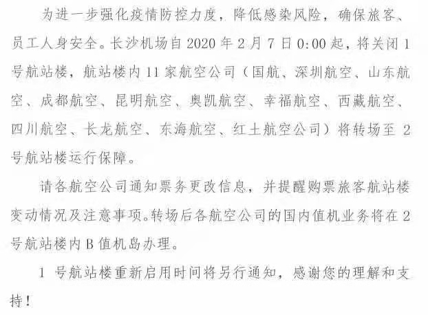 重要通知:2月7日零點(diǎn)開始,長(zhǎng)沙黃花機(jī)場(chǎng)T1航站樓將關(guān)閉,原T1航